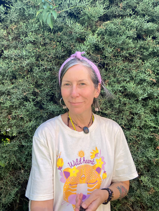 Camiseta de algodón orgánico en color natural raw, modelo Alebrije