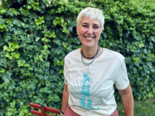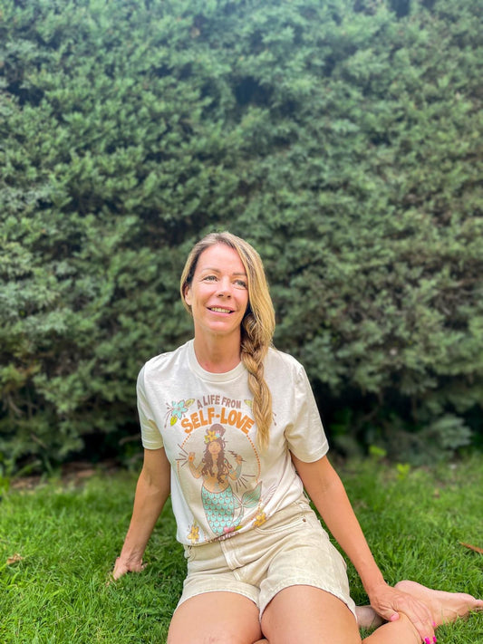 Camiseta de algodón orgánico en color natural raw, modelo Sirenas