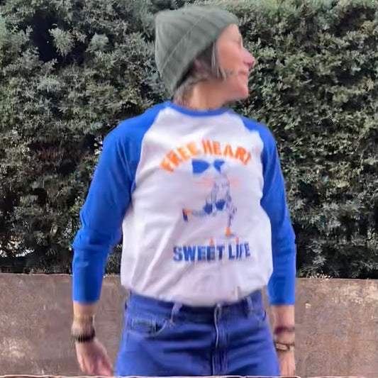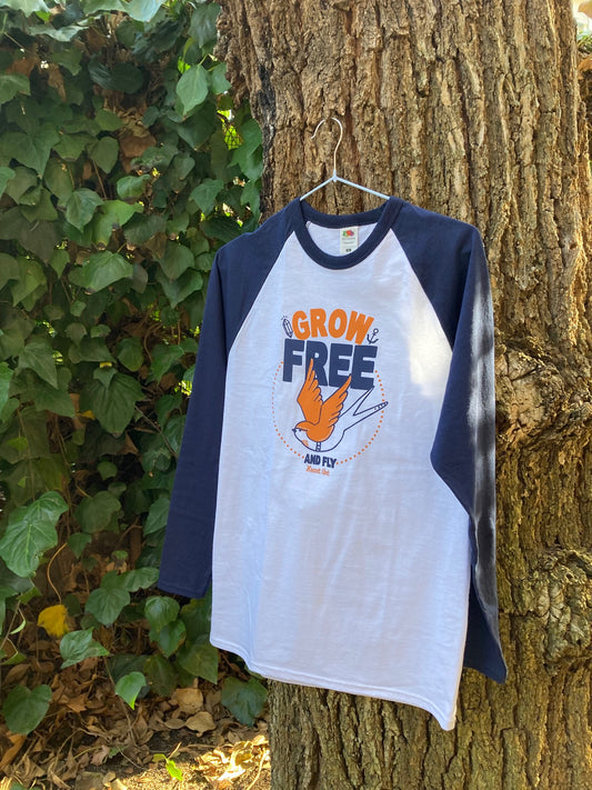 Camiseta de béisbol de manga larga, azulón/blanco. Marca de la camiseta: Fruit of the Loom Unisex.