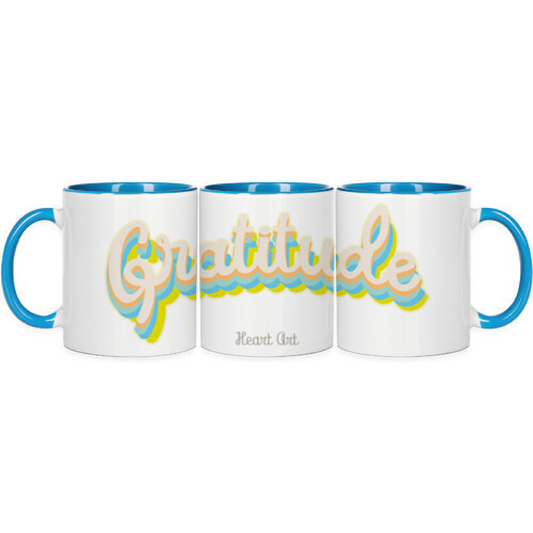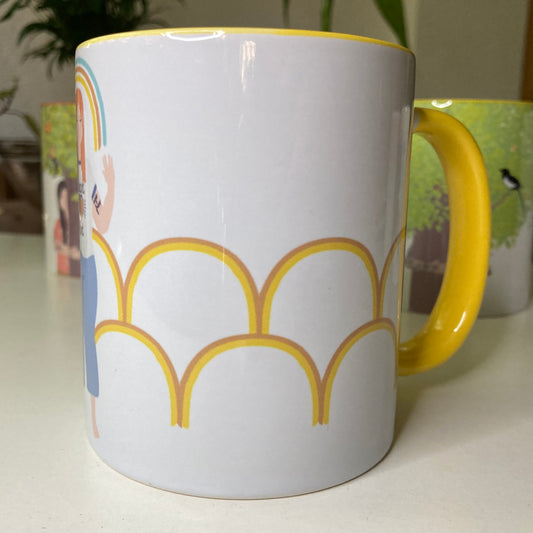Taza de desayuno amarilla, modelo Chica arcoiris.