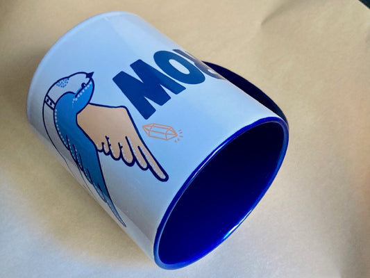 Taza de desayuno azul, modelo de la colección: Abraza un árbol.