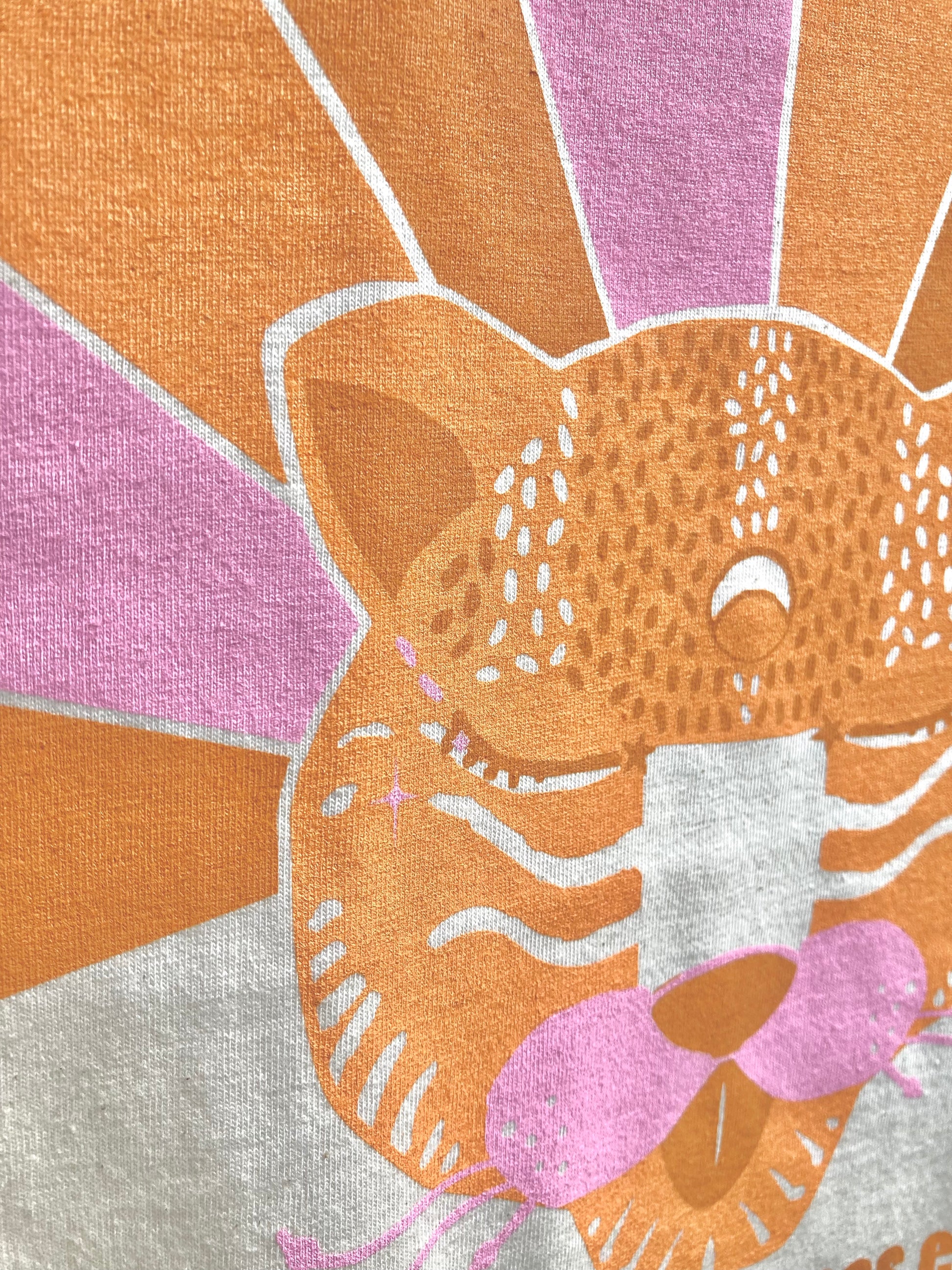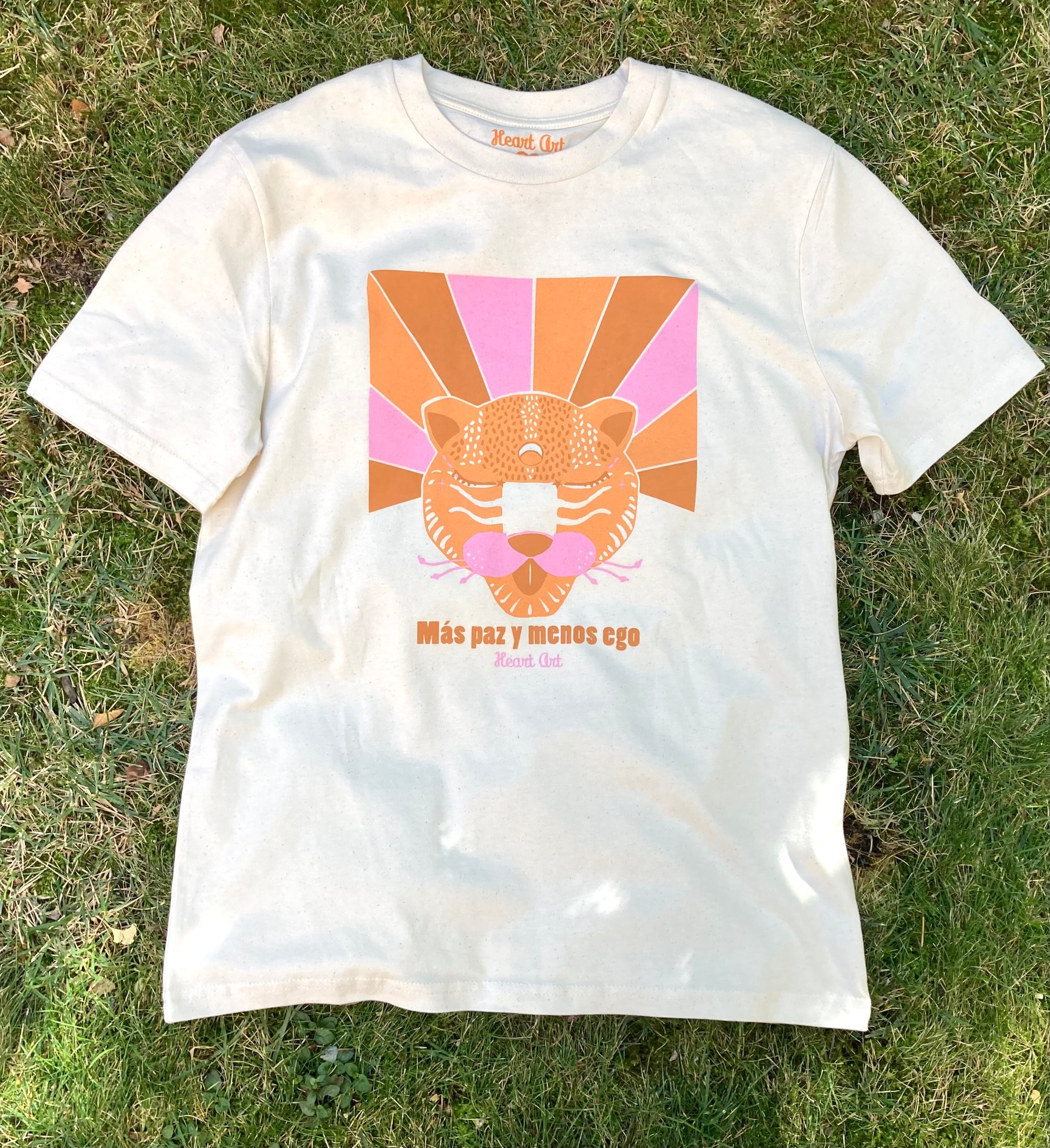 Camiseta de algodón orgánico en color natural raw, modelo Alebrije rayos
